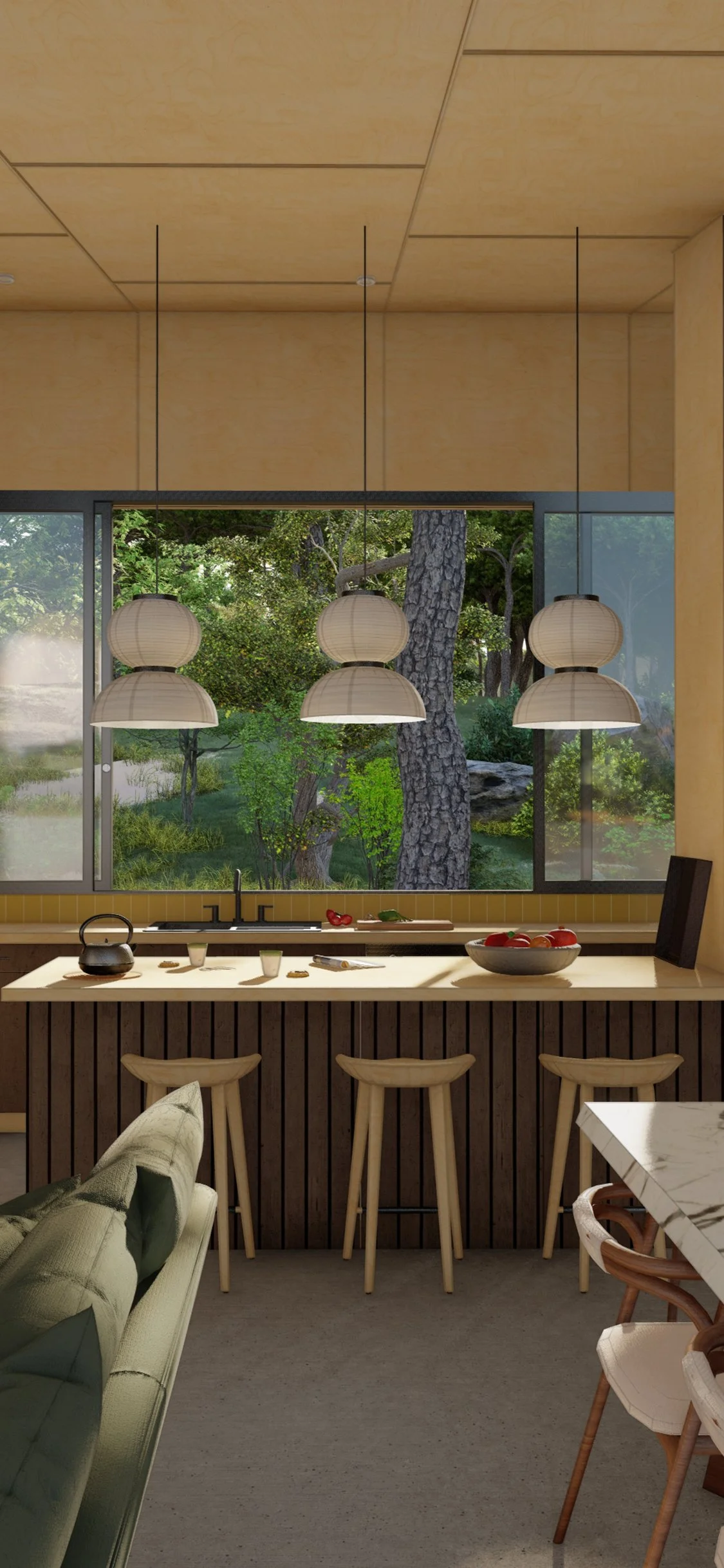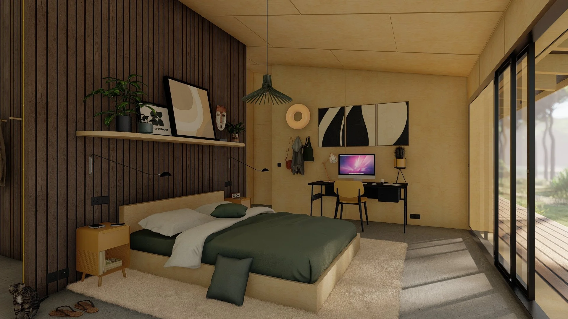 J’ai réalisé ce projet dans le but de montrer un style architectural qui m’anime particulièrement et pouvoir explorer un style d’agencement qui s’adapte à son environnement immédiat.